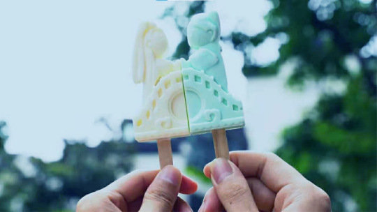 水浴鍋加熱可可(可可塊、糖粉等),不停攪拌至完全溶解,注意不要過熱,倒入吸塑模具中靜置并放入冰箱 |